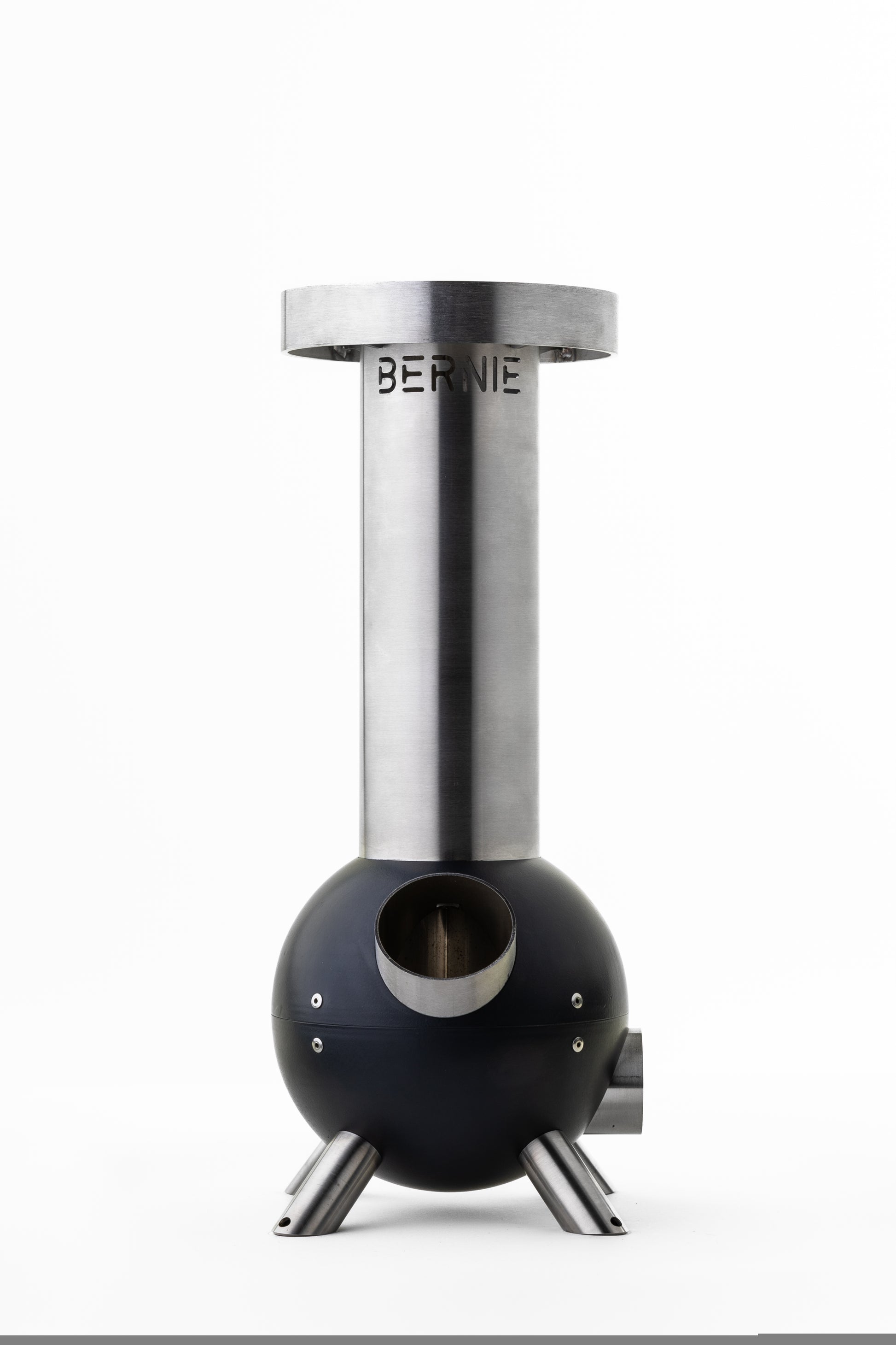 Bernie is a wood fuelled rocket stove, perfect for heating a kettle or pan, quickly, safely and efficiently with almost no smoke.